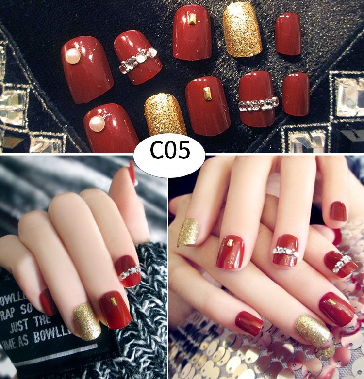Amazon Com Fake Nails False Nail Design Pretty Nail Designs Red Fake Nails Beauty