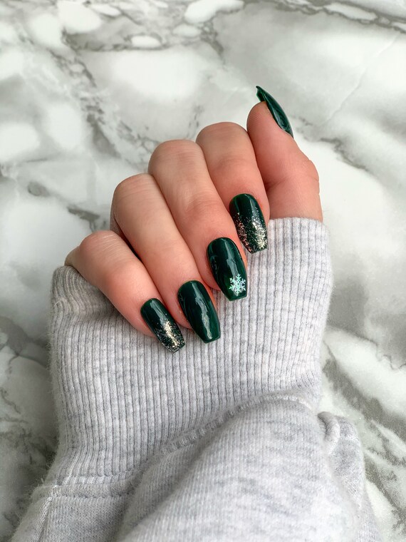 Pine Green Glitter Christmas Set Press On Nails Handmade Etsy