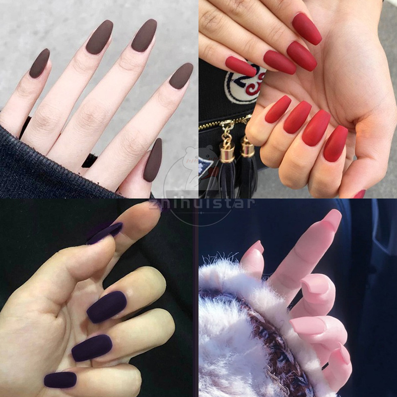 Shop Online 15 Colors Matte Wine Red Frosted Coffin Fake Nails False Nails Stylesnails Com