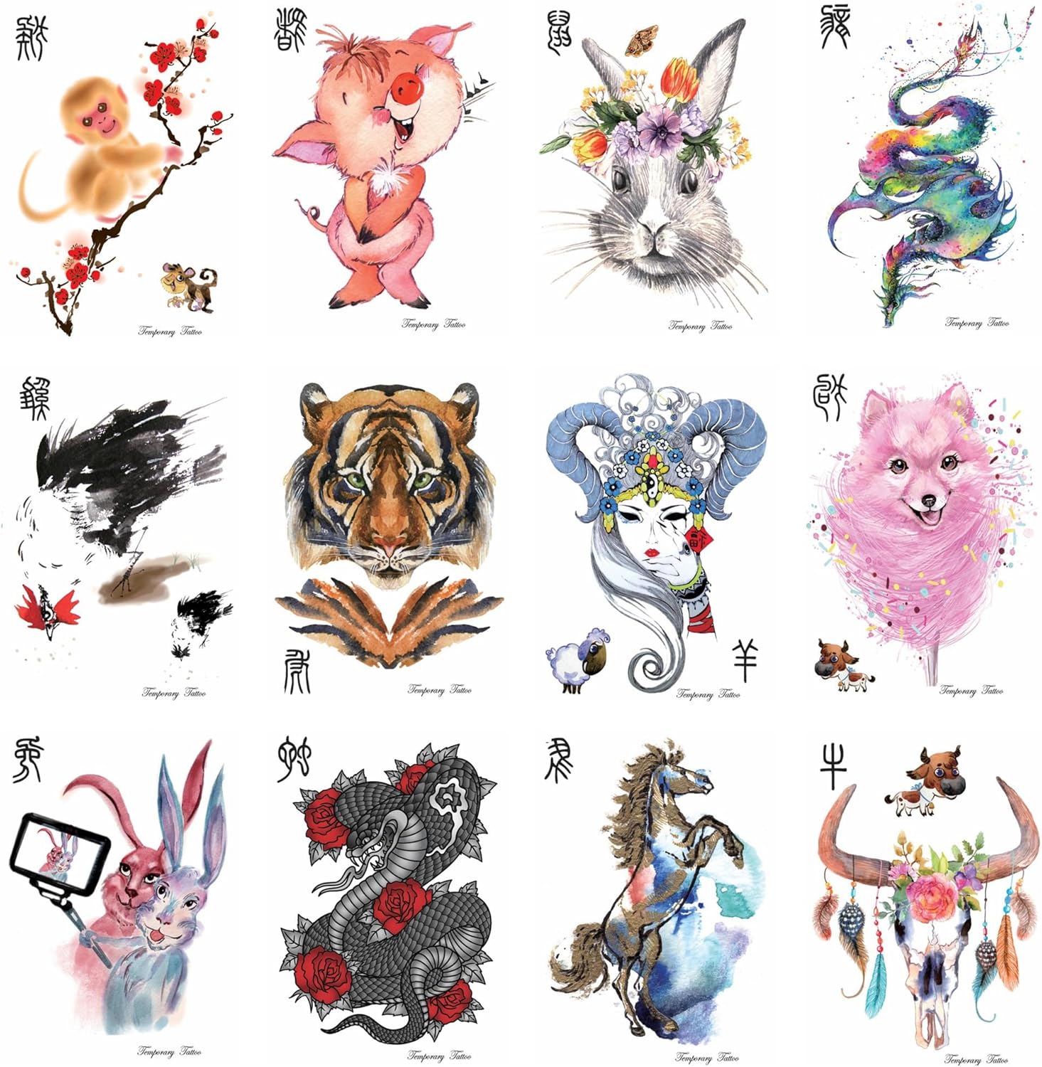 Amazon Com 10 Sheets Chinese Zodiac 8 25 Large Arm Temporary Tattoo Fake Tattoo Stickers Clothing