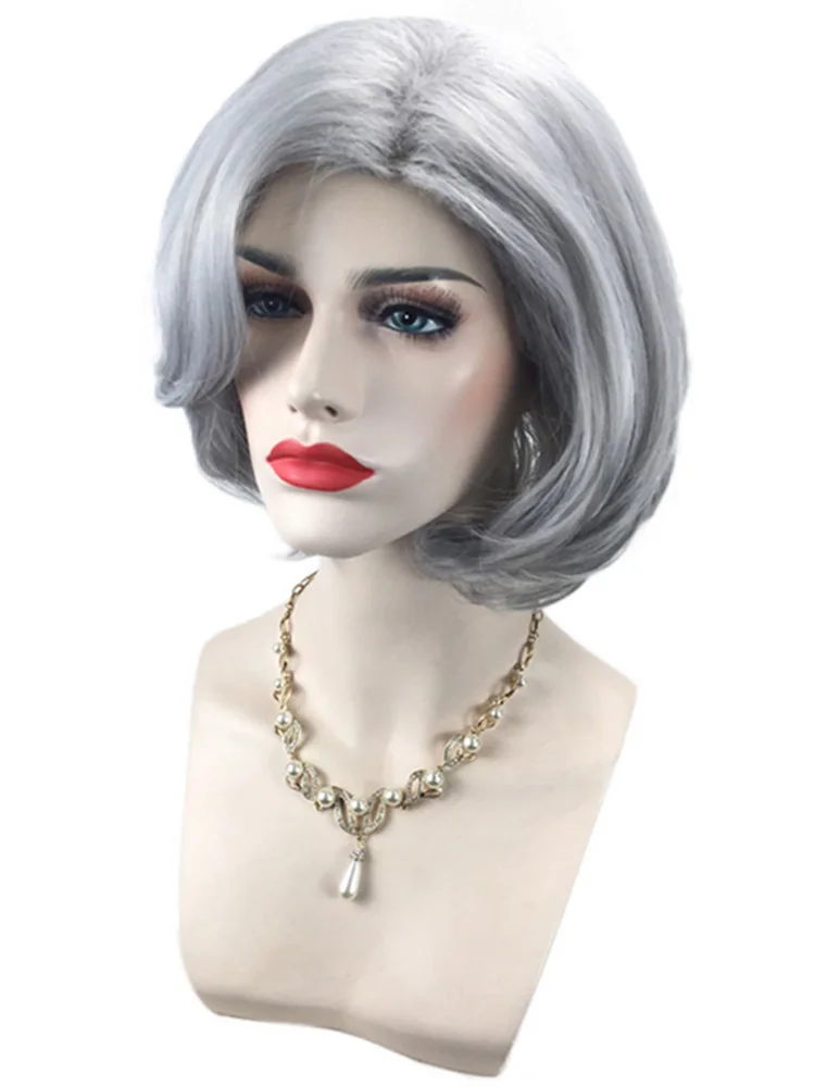 Women Synthetic Hair Wigs Short Grey Curly Bob Side Part Wig Movie Tv Costumes Aliexpress