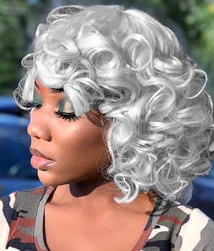 Amazon Com Elim Curly Wigs For Black Women 14 Short Silver Grey Wavy Bob Hair Wig With Bangs Natural Heat Resistant Synthetic Wigs With Wig Cap Z014wh Beauty