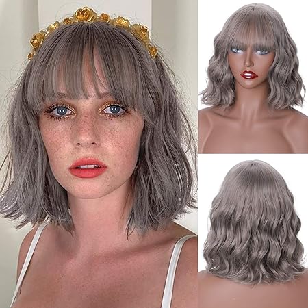 Amazon Com Short Curly Wig Cosplay Wigs For White Women Synthetic Shoulder Length Wig Side Part Natural Blue Grey Bob Pastel Wavy Wigs For Daily Party Synthetic Heat Resistant Fiber Hair Wigs 14