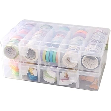 Amazon Com Homdsim Washi Tape Box Organizer Storage Divider Closet Container With 15 Adjustable Compartments Clear Masking Tape Desktop Tape Diy Sticker Roll Tape Holder Storage