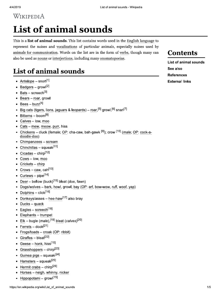 List Of Animal Sounds Wikipedia Pdf