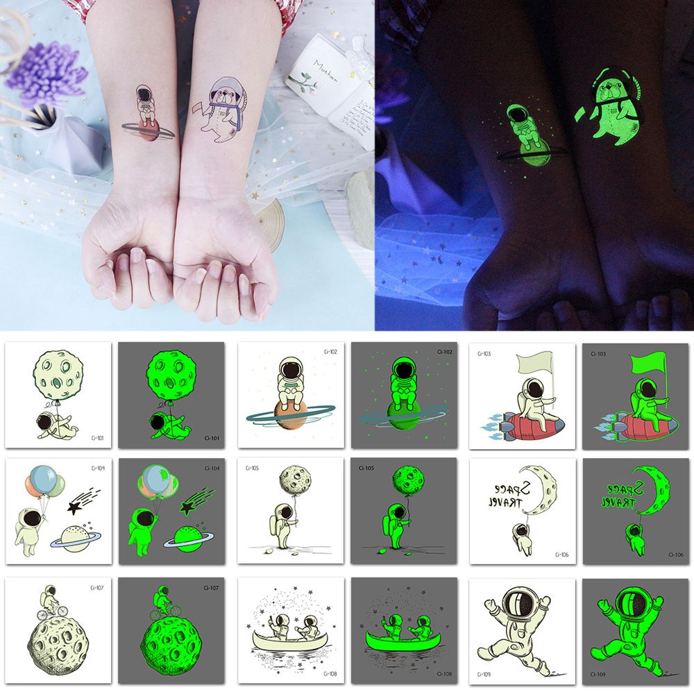 Small Luminous Temporary Body Art Tattoo Sticker Space Universe Cute Cat Moon Designs For Kids Boy Girl Waterproof Noctilucence Tatoo Night From Homimly 0 43 Dhgate Com