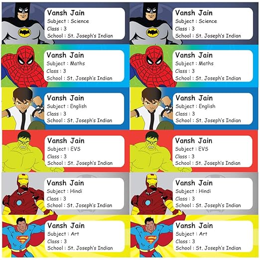Smile Labels Superheroes Design Personalised Name School Note Book Label Stickers For Kids Set Of 24 Amazon In Office Products