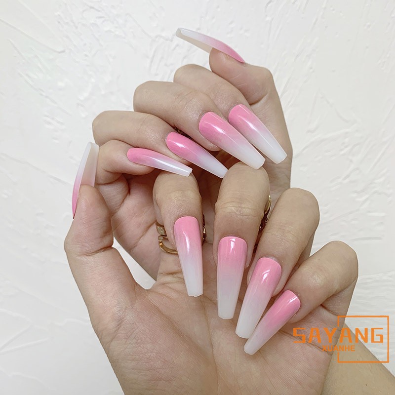 Sayang 24pcs Long Press On Nails Coffin Gradient Powder Color Wear With Product Wearable Fake Nail Tips Shopee Singapore