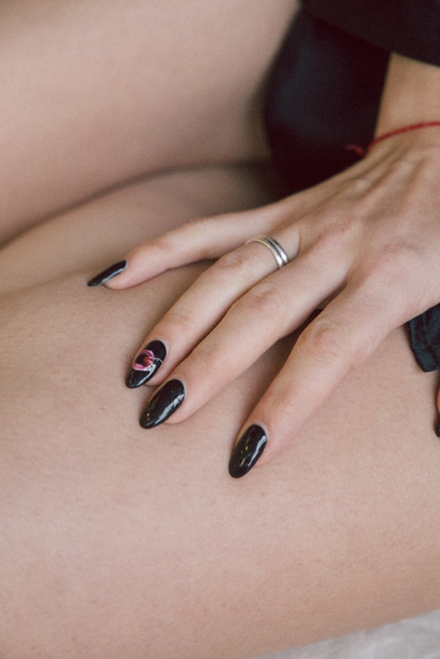 Then use it to draw a waved line from the edge of one side of your nail stopping just past the center of the nail. Dip the end of a toothpick into your black nail polish. Repeat on the opposite side.